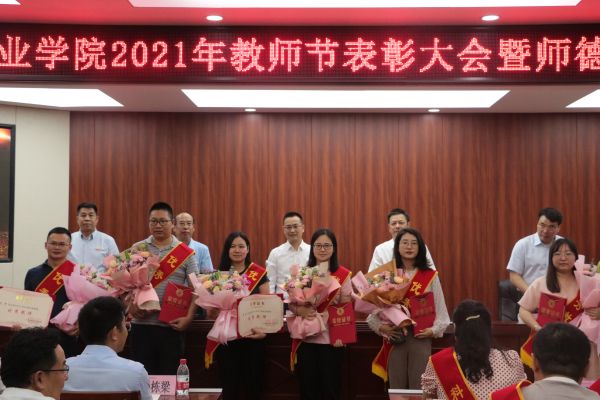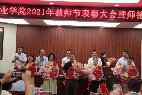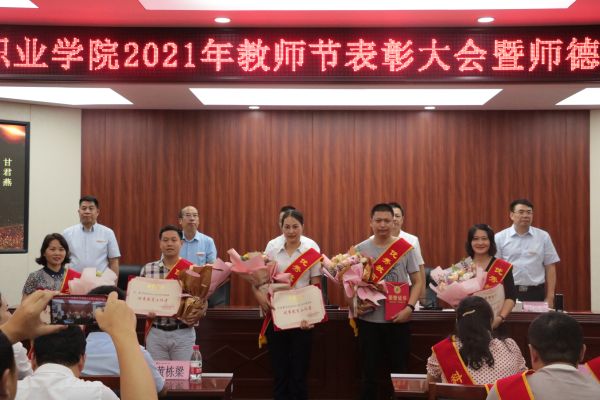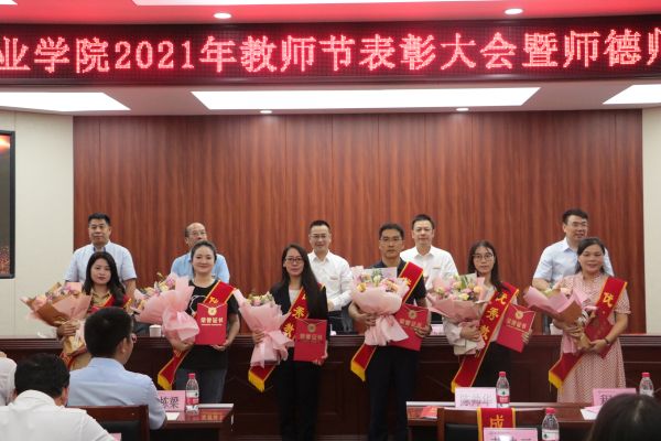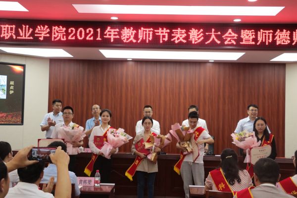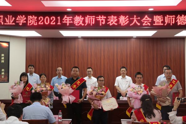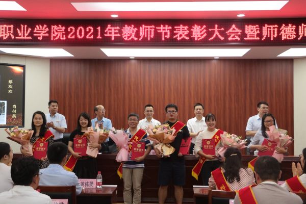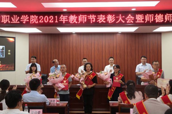 9月9日下午,学校在博学馆510会议室隆重召开2021年教师节表彰大会暨师德师风建设推进会,全体校领导出席会议,科级及以上干部,获得表彰的团队代表和优秀个人,各二级院系教研室主任、专业带头人、新教师代表、学生代表参加会议,会议由文斌副校长主持。